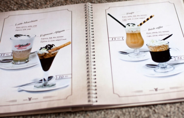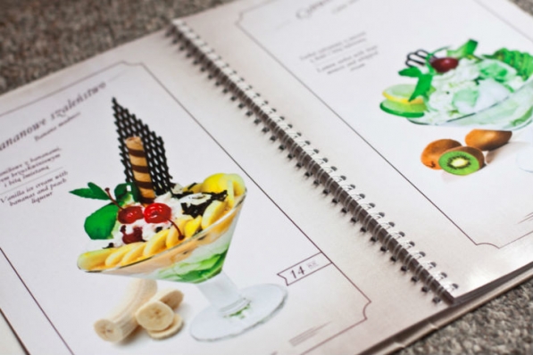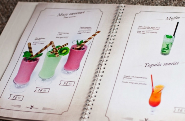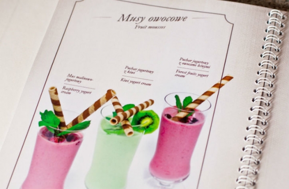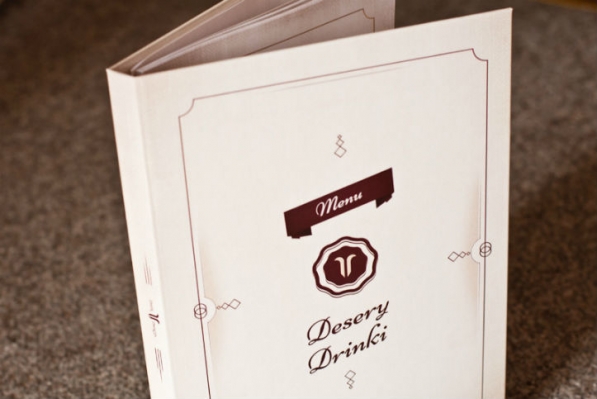 Wydruk – twarda okładka i karty menu pokryte folią błysk – sprawił, że trzymając menu w ręce ma się poczucie, że jest to coś wyjątkowego.